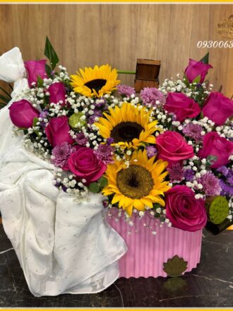 باکس گل ترکیبی با رز طبیعی کد0563